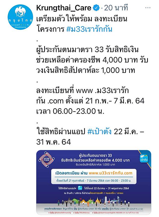 วิธี ลงทะเบียน www.ม33เรารักกัน.com อย่างละเอียดจากหน้าเว็บ ม.33เรารักกัน รับเงิน 4,000 บาท พร้อมเงื่อนไขสำคัญ เปิดให้ลงทะเบียน เช้านี้ 21 ก.พ.